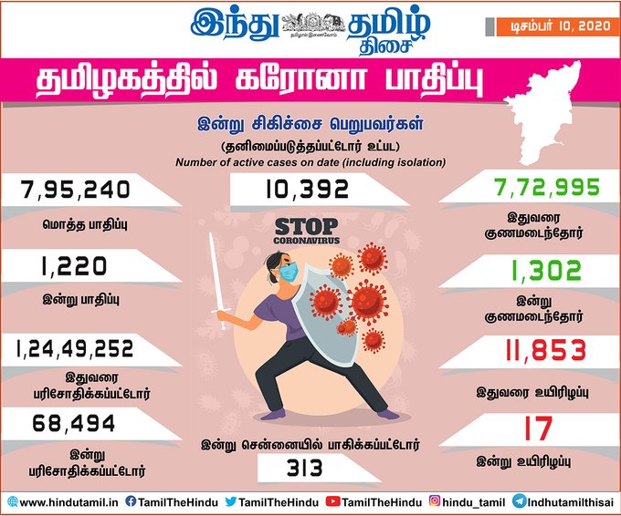 பரிசோதனைகள், பாதிப்பு, குணமடைந்து வீடு திரும்பியவர்கள் என அனைத்துத் தகவல்களையும் தெரிந்து கொள்ள இங்கே க்ளிக் செய்யவும்